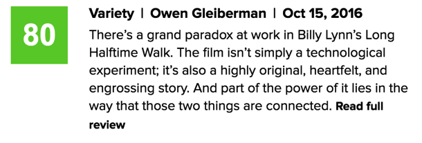 上个月《比利林恩的中场战事》在美国试映后果然引起了一阵哗然!