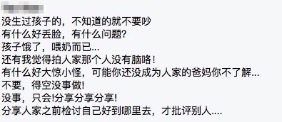 不是说你公然在地铁掏奶哺乳就是个好母亲,连自己的私密部位都不会遮避一下,还不准大众点评,这是什么母爱?”