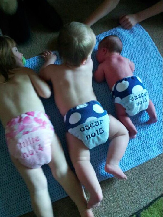 为了提高效率,几个宝宝的尿布裤都是编了号的……
