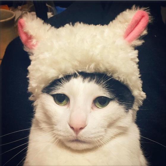 虽然眉毛长得衰,但是整只喵都很阳光,很开心的样子…