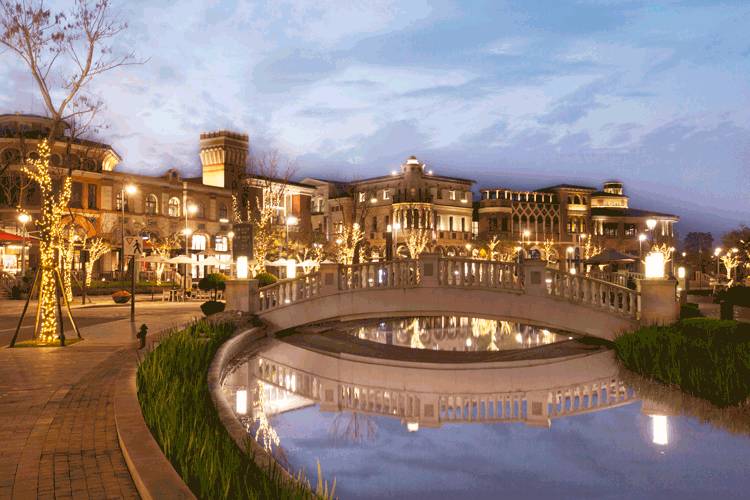 奕欧来苏州购物村,就位于风景如画的阳澄湖畔,离著名的重元寺都不远。