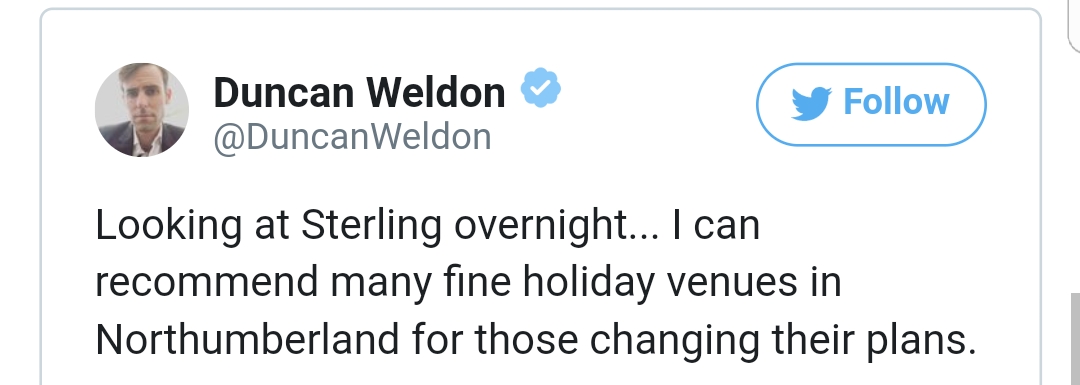 去年退欧结果一出来,咣当一下,英镑经历了有史以来最大的一次贬值。