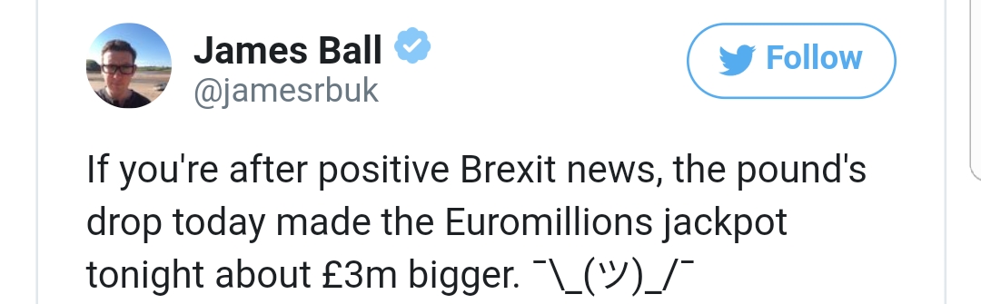 “呐,如果往好的一面看,英镑一跌,让那些欧元区大富豪们的资本一下多了几百万镑呢!”