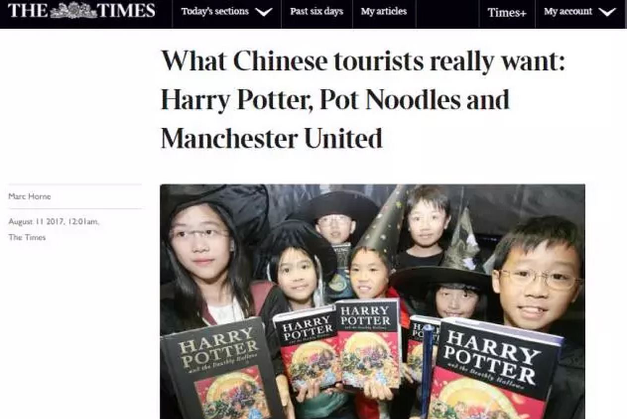 当然有时候也会闹点笑话。。。比如泰晤士报的这个《中国游客到底要什么:哈利波特、泡面和曼联》。。。