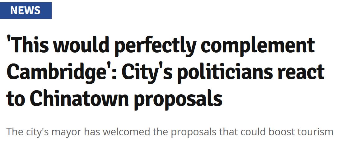 剑桥市长大人说,中国和剑桥有着深厚的历史渊源,中国城是对剑桥的“完美补充”,是“画龙点睛之笔”,最重要的还是一个中国城可以吸引超大量的游客和商铺入驻。