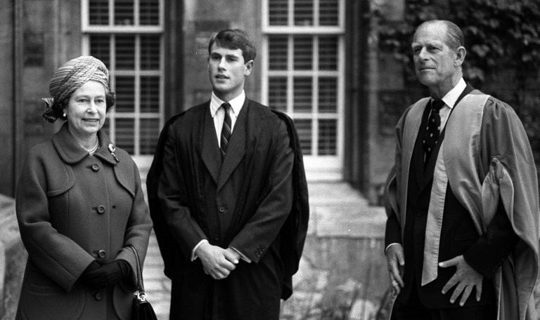 1984年,两人在剑桥大学的耶稣学院看望儿子爱德华王子