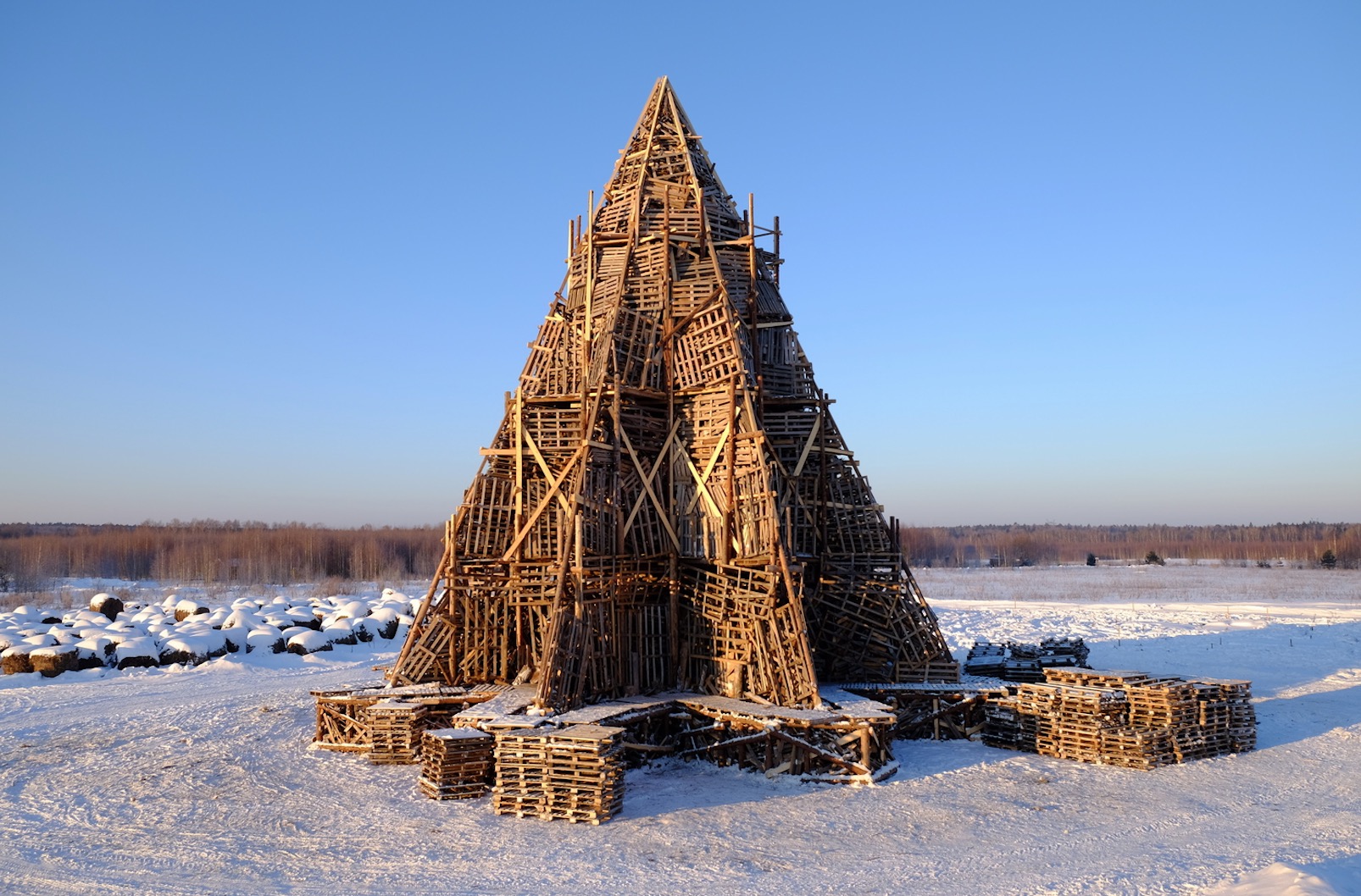 Polissky大叔想造一座用柴火和稻草堆起来的“巴别塔”…