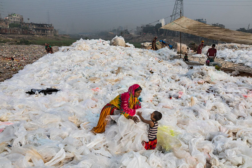 在孟加拉首都达卡,大约有12万人为垃圾循环行业工作,1800万的居民每天都要产生大概11000吨的垃圾”