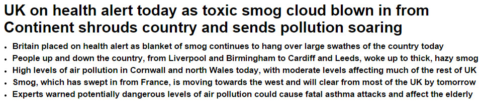 有毒雾霾今天袭击英国!PM2.5才破100..英国人就要疯了。。