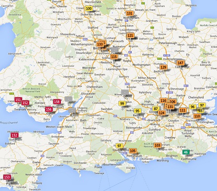 英国。。。 大概伦敦110-130左右。。 威尔士150多-。-