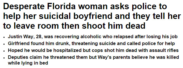 警察还表示.. 类似这样的案件他们遇到过很多,统一称为 “suicide by cop” 也就是有自杀倾向的人用故意袭警刺激警察的方式让警察杀死自己….