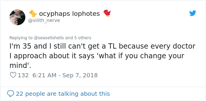 于是,她去询问了自己的医生(一个老年白人男性),能不能结扎她的输卵管……