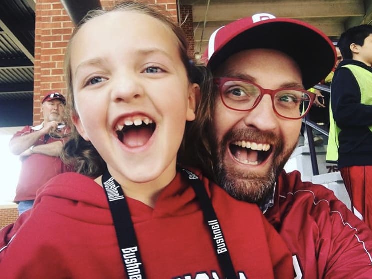 “让女儿骑在老爸脖子上简直是魔法般的快乐。珍惜当下吧,趁你还强壮,趁她还幼小。”