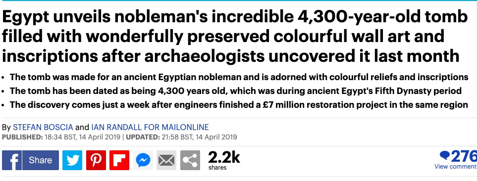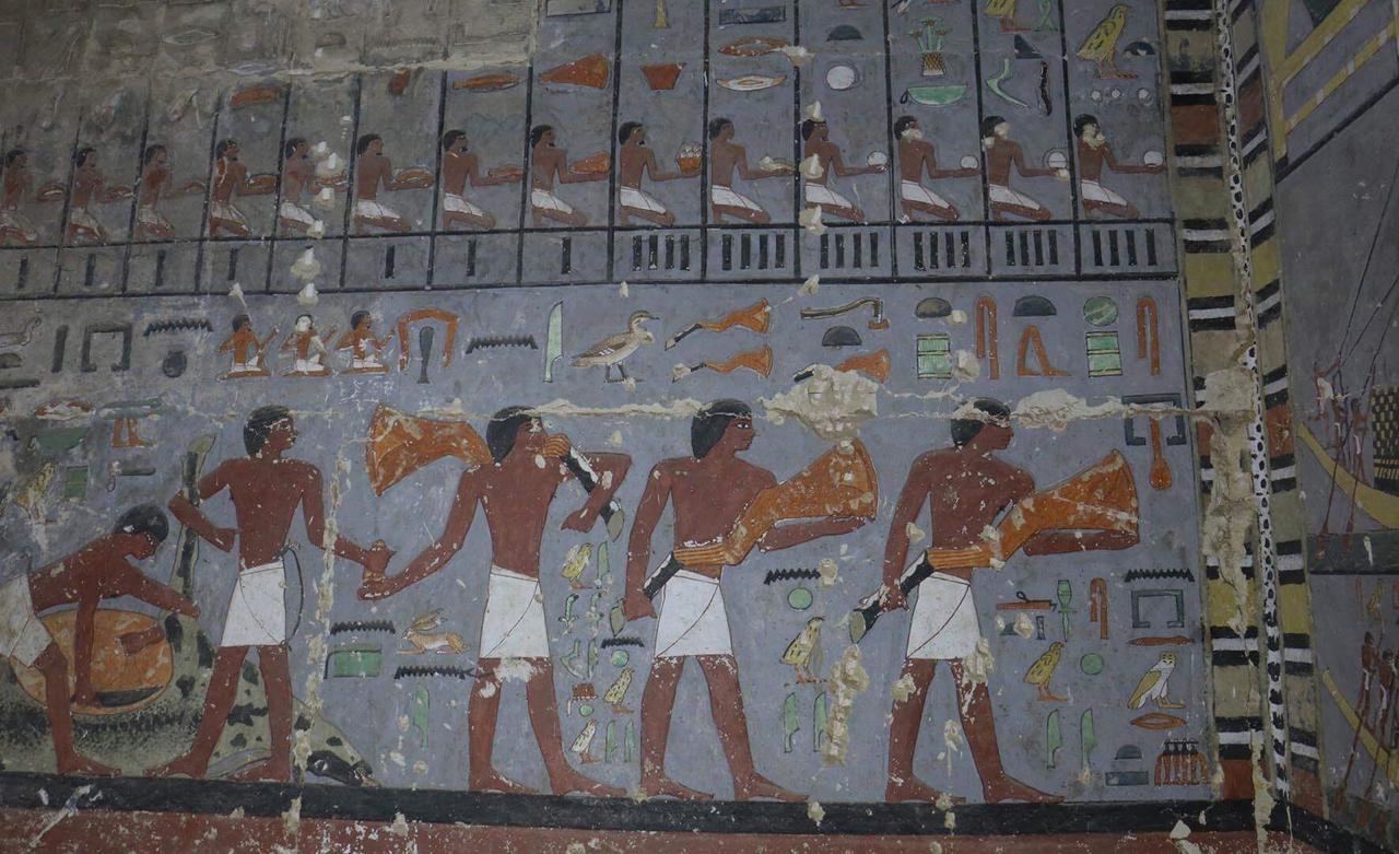 最近,来自埃及的考古学家发现了一处4300多年的古墓。看到墓中壁画的鲜亮程度,网友表示,这该不会是刚画上去的吧?
