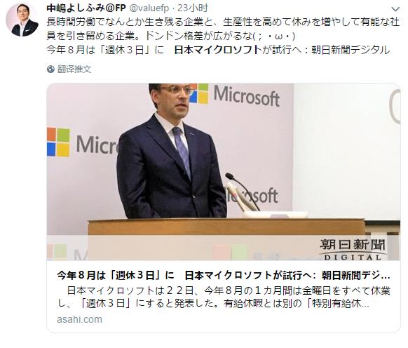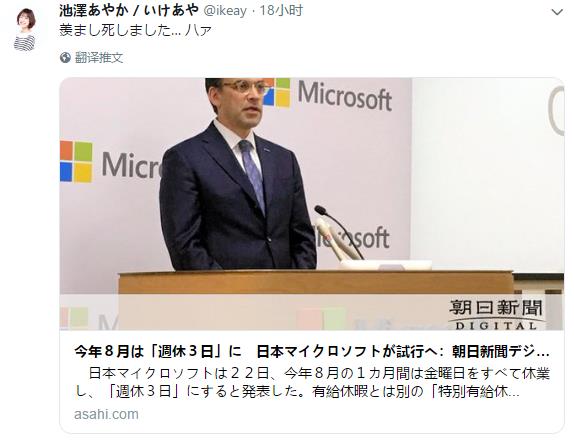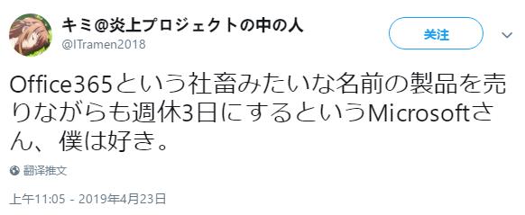 “一边卖着Office365这样社畜风名字的产品,一边推行周休3天,这样的微软,我爱了。”