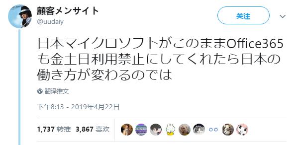 “如果微软日本能在周五周六周日禁用Office365的话,或许真的能改变日本的工作方式啊。”