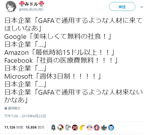日本企业:希望能有Google、苹果、Facebook、亚马逊(简称“GAFA”)这些公司水平的人才来投靠啊。