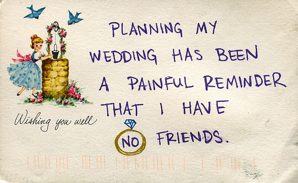 “计划婚礼这件事让我突然间扎心的意识到我真的没朋友。”