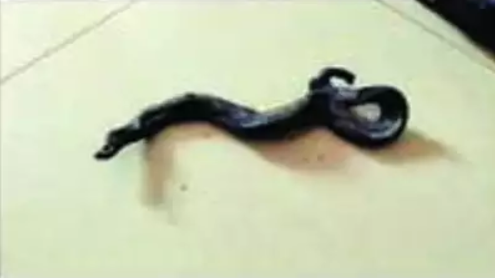 气急败坏的亲戚抓起这条奄奄一息的蛇,然后点了火将它活活给烧死了。