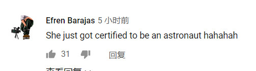 “我宣布,她已经正式成为了经过认证的宇航员哈哈哈哈。”