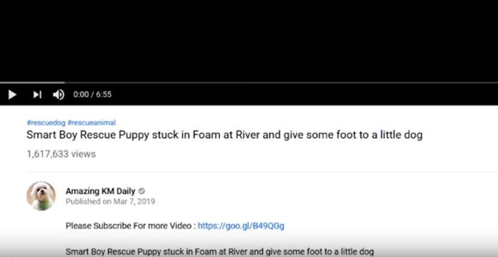 比如这段今年3月7日发布的视频,名字叫做“聪明的男孩从河中救出被泡沫卡住的狗狗并给了小狗一些吃的”,观看次数达到161万次。
