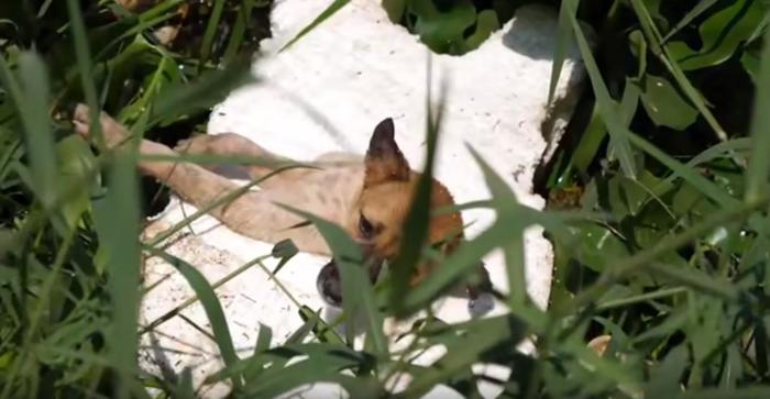 和另一则视频“挽救3只困在水泥池里的小狗”中的狗子,