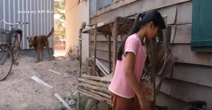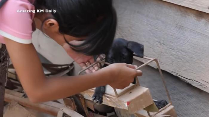 另外一段视频,名叫“聪明女孩救援被困在废铁中的狗子,并给狗子一些吃的”,