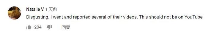 “太恶心了。我去举报了他们的视频。这些内容不应该留在油管上。”