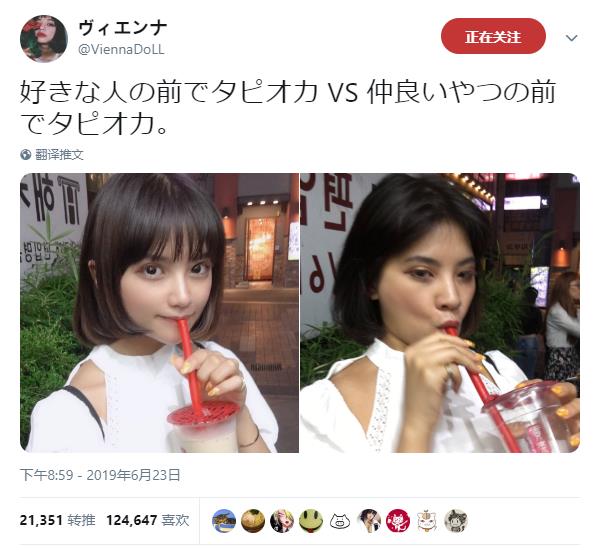 比如这张,“在喜欢的人面前喝珍珠奶茶 VS 在好朋友面前喝珍珠奶茶”。