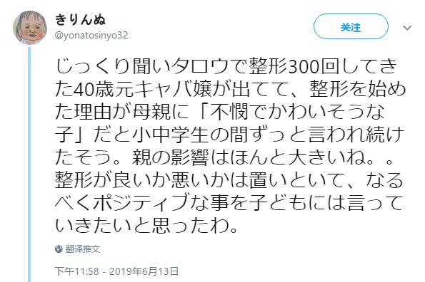 父母对儿女的影响真的很大。整形是好是坏先放一边,还是希望天下父母能尽量对孩子说些积极向上的话呢……