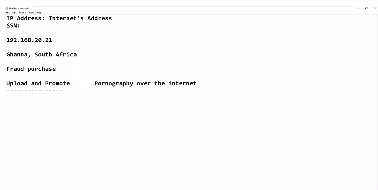 对方表示,这个192.168.20.21的IP地址来自加纳,南非。 正是这个人黑了你的电脑。