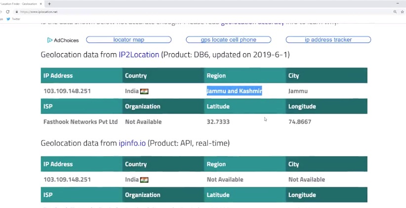 Browning发现,对方是来自一个103.109.148.251的IP地址。 Browning再进一步查了一下对方IP地址的准确区域,竟然是在克什米尔地区一个叫Jammu的地方!!