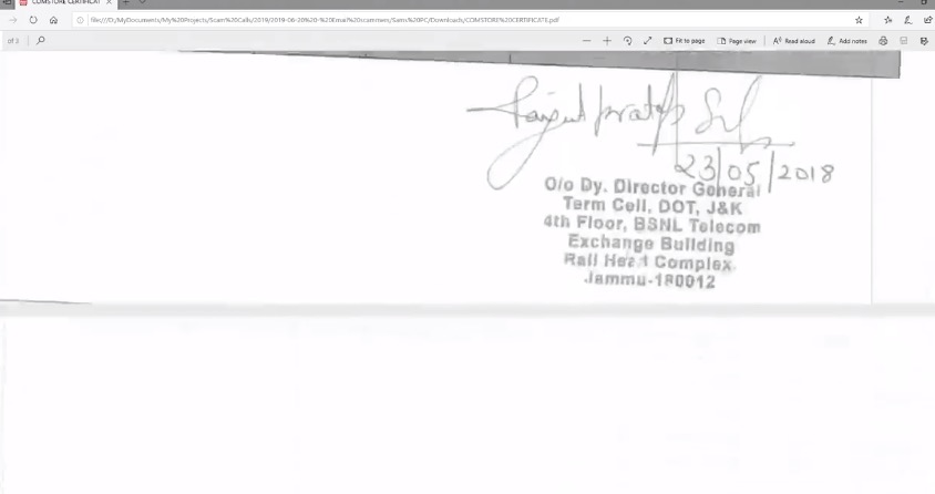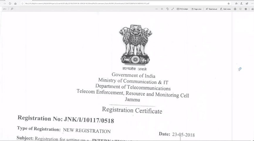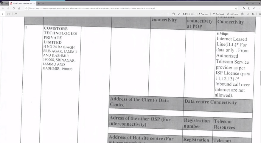 他首先找到了这个骗子团伙注册的公司文件,公司全名叫做“Comstore Technologies Private Limited”。