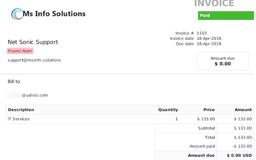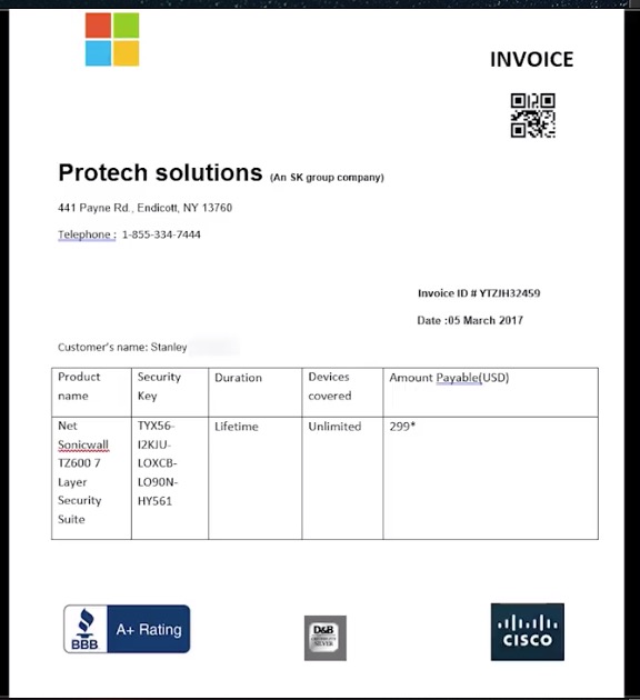 回过头来,Browning继续寻找相关证据,他惊讶地发现对方竟然还有伪造的微软抬头的发票….