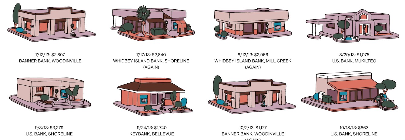 每次Hathaway过来抢,索要的金额都不大,拿上点钱就开溜,那两年里,Hathaway抢得金额最大的一笔也不过6396美元。