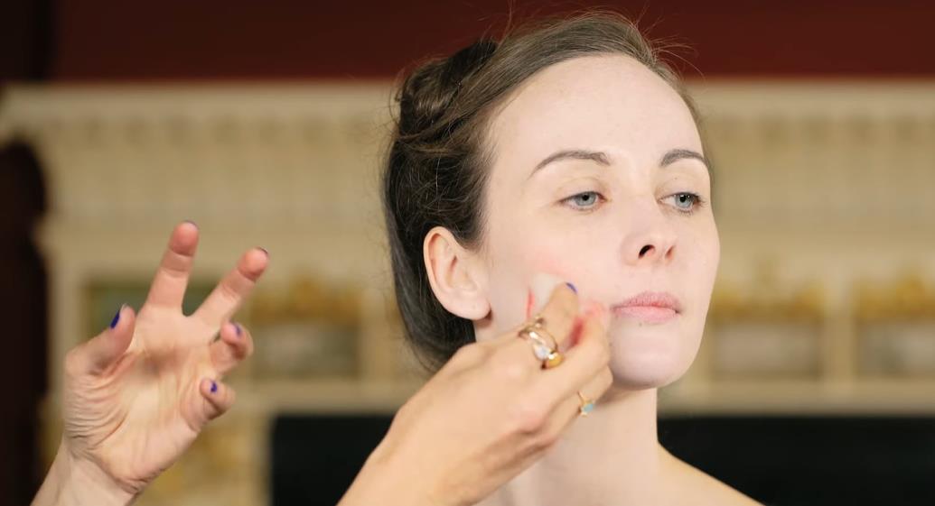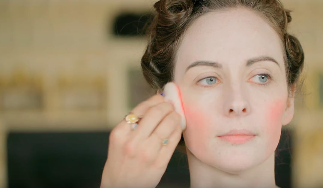 所以,这次化妆师也放弃了这种古代材料,但沿用了当时的上腮红手法: