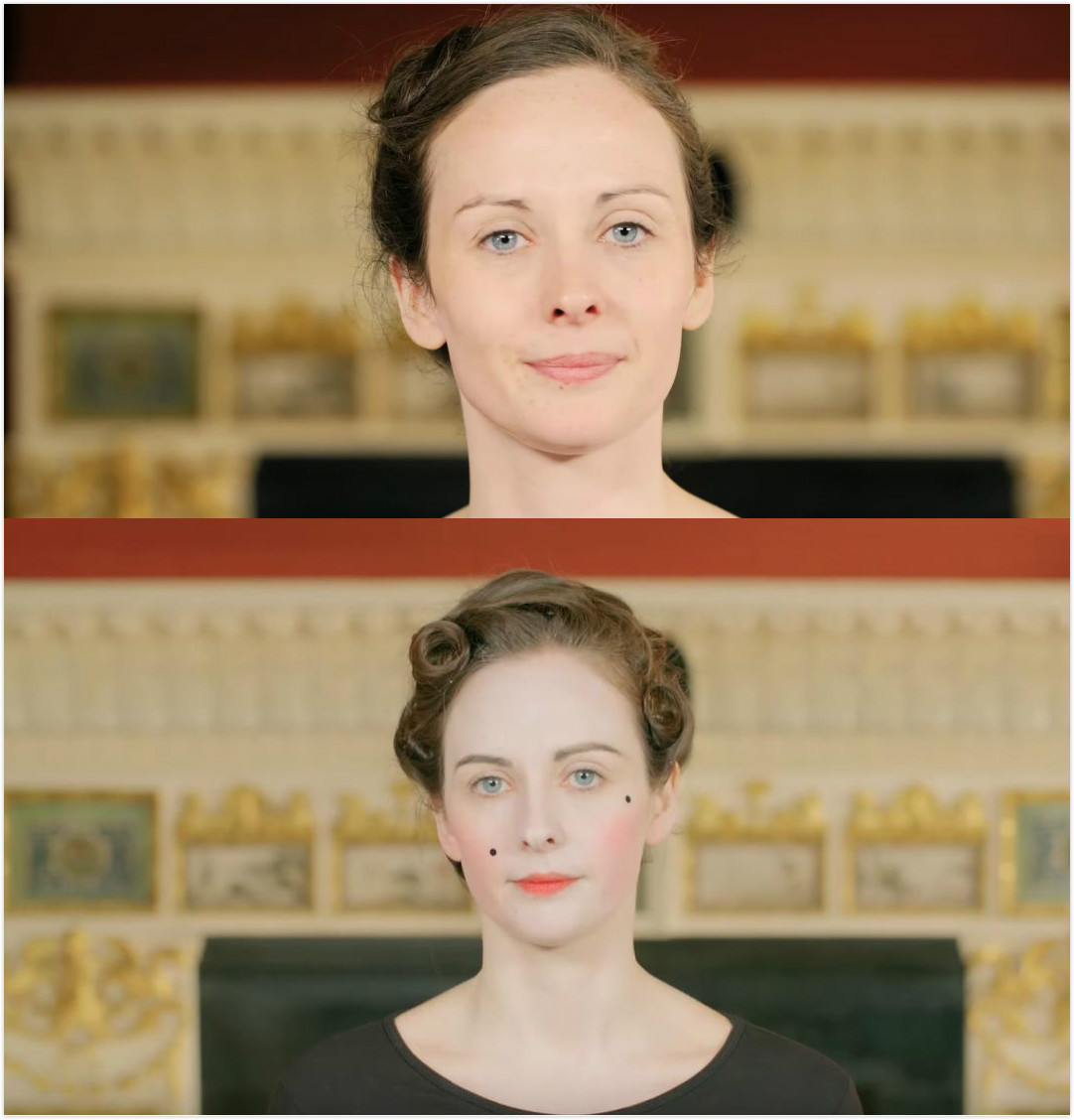 为了做出这样复古的油画造型,化妆师决定尽量在细节方面还原当年的化妆程序。