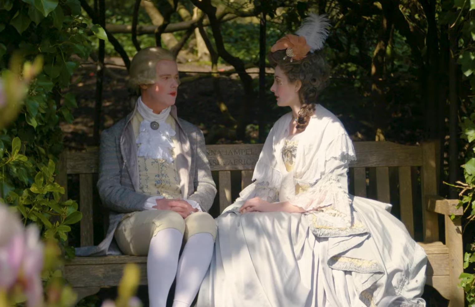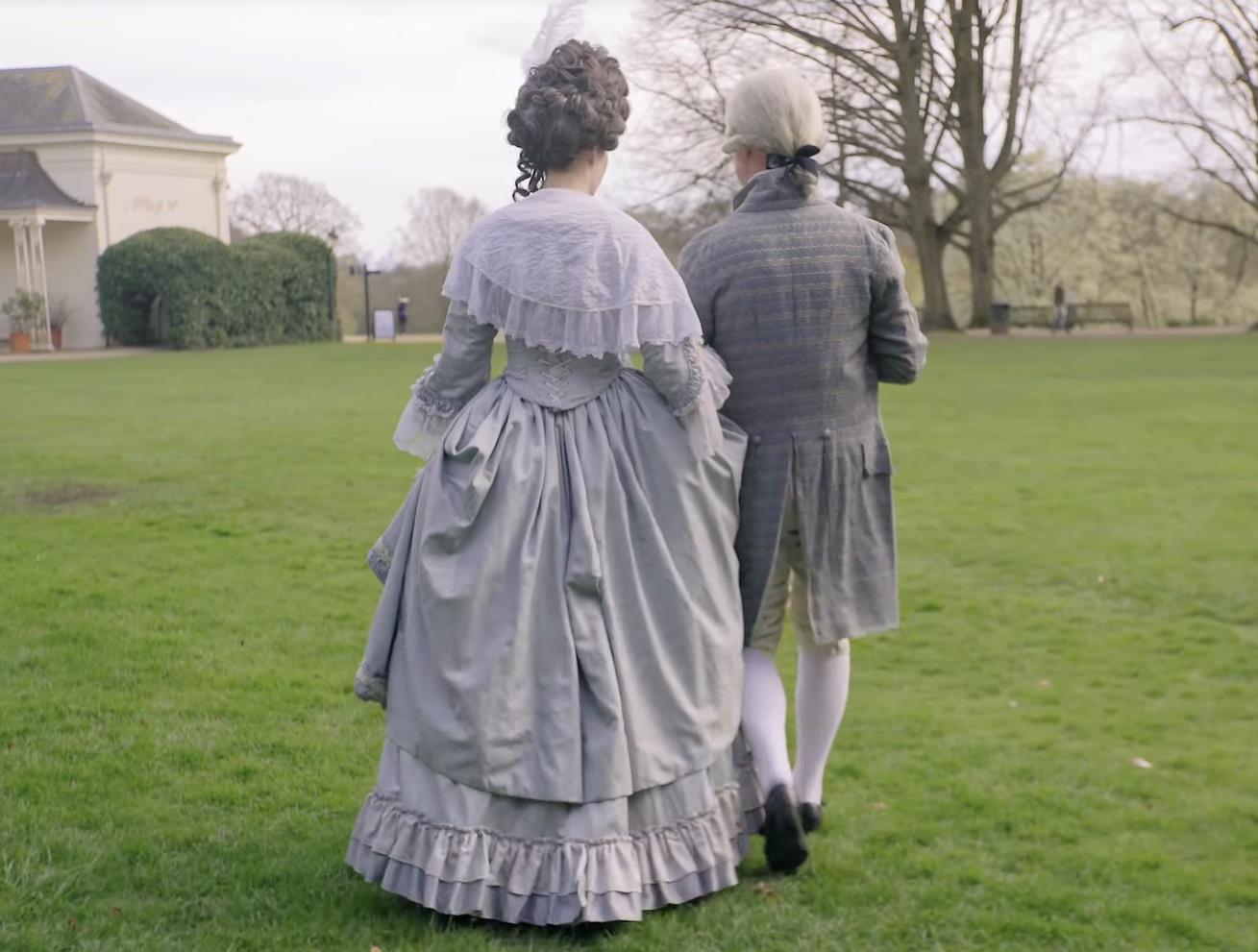 两人手挽手在花园里散步时,仿佛真的回到了18世纪。