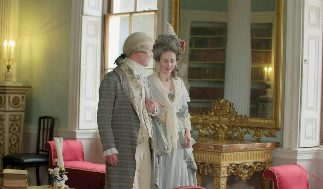 最新一集里,节目组在皇家城堡里,还原了1770年代乔治王时期的贵族夫妻造型: