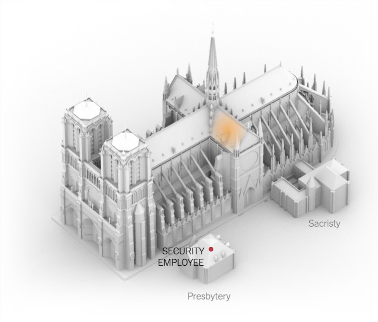 这位火警安保人员三天前才来圣母院上班,一看到警报就有点慌,他也没多想,立马通知了离疑似火源最近的人——教堂圣餐台只有几步之遥的一名教堂警卫。