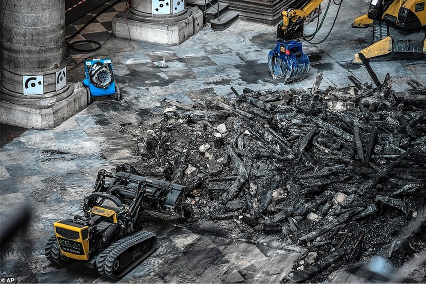现场的情形也证实了首席建筑师的说法,专家和工人虽然进来了,但涉足的每一寸地方都小心翼翼,一些有垮塌风险的地方,仍旧只敢让机器人出动作业…..