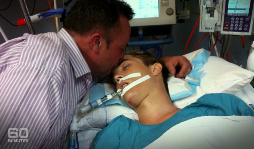 2天后… 他离开了这个世界…… 父亲忍着心痛跟他告别…