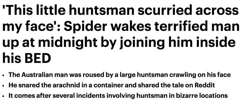 “这个小东西在我的脸上一顿乱窜”,一只大蜘蛛爬上了一名男子的床,然后把他惊醒了