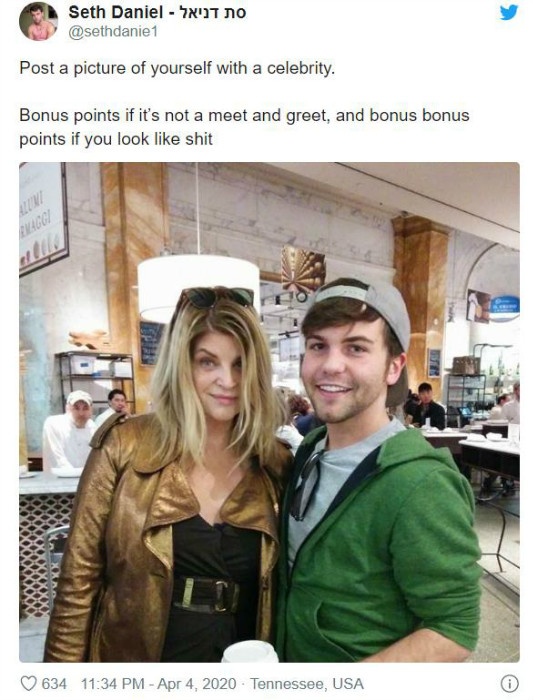 话说最近因为疫情的原因不能出门,很多人都把休闲的时间花在了网上,前两天一位网友小哥在推特上发了一张和美国女星Kirstie Alley的合影,他说,
