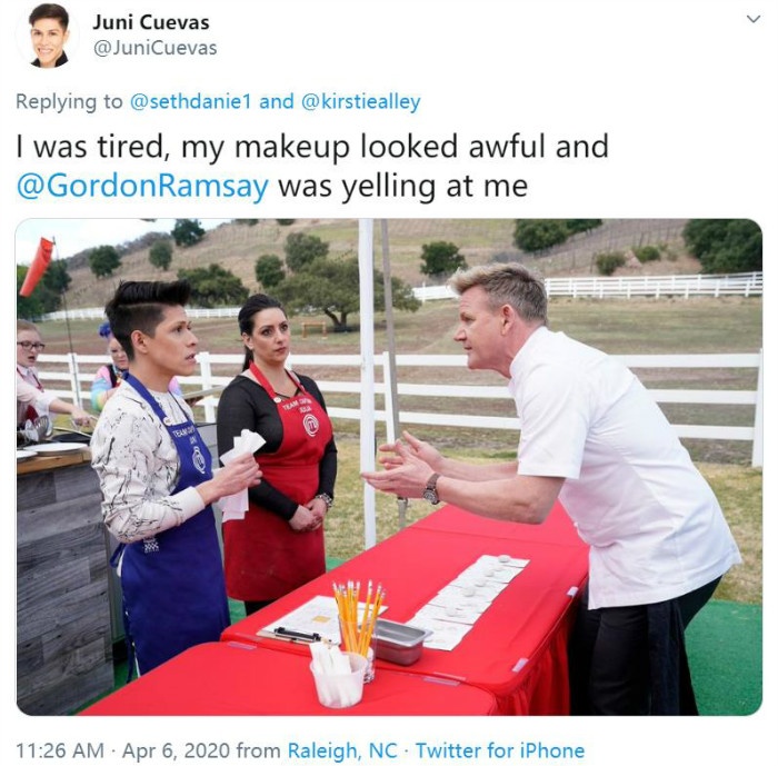 我当时很累,妆也都花了,而且“地狱厨神”Gordon Ramsay正在冲我吼呢。