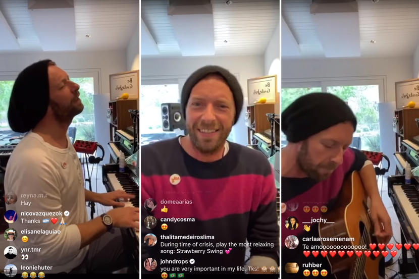 他说,本来Coldplay是打算合体表演的,但由于成员各自都被困在了不同的国家,没办法只能先用一己之力撑起整个乐队….
