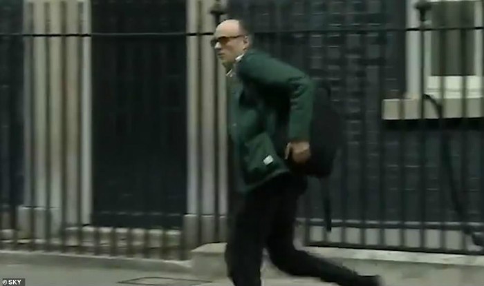 Cummings就是3月底Boris确诊后不到半小时,从唐宁街10号首相办公室后门偷偷溜走却被记者拍个正着这位,据传他也是“群体免疫”的方案的决策者。