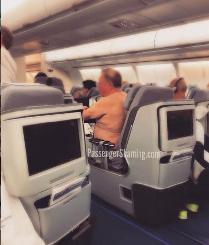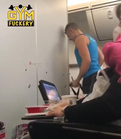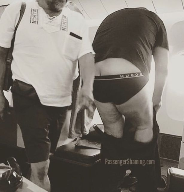 -公开在机舱过道里换裤子,完全不介意给其他乘客展示三角内裤: