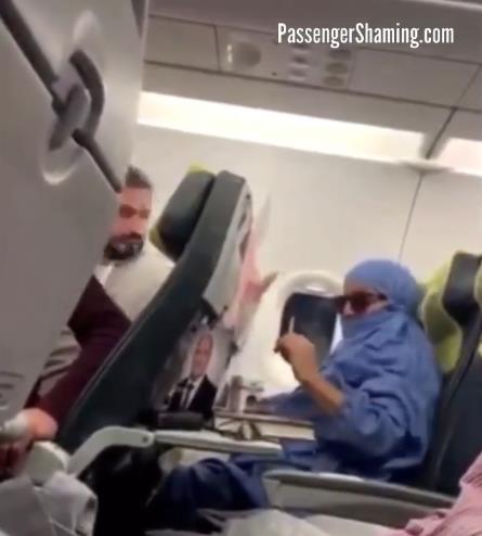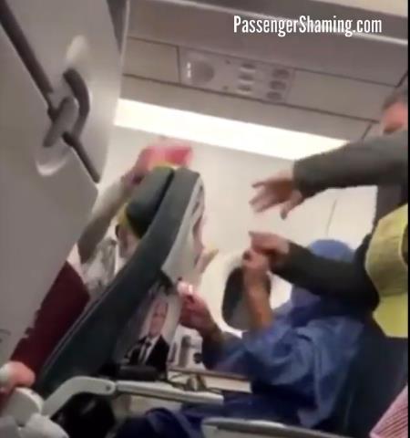 下面这位女士在机舱里公然抽烟,被其它乘客阻拦以后还号称要放火烧飞机: