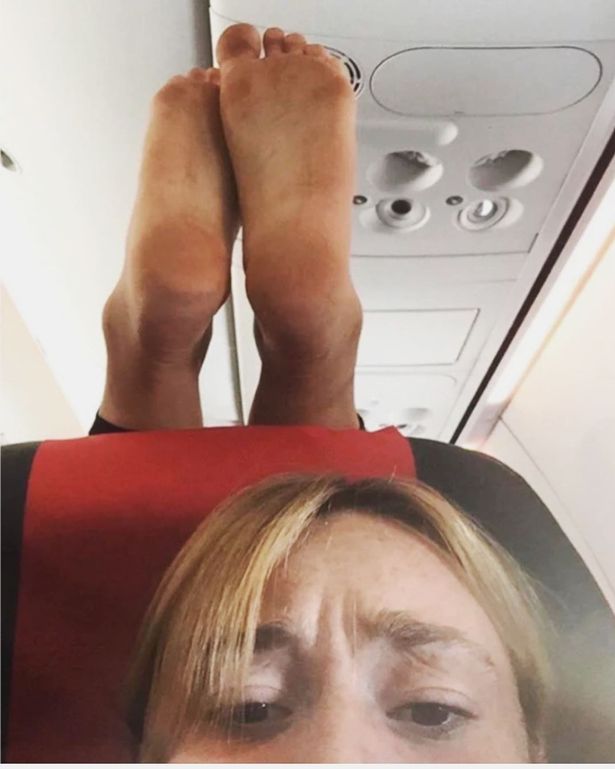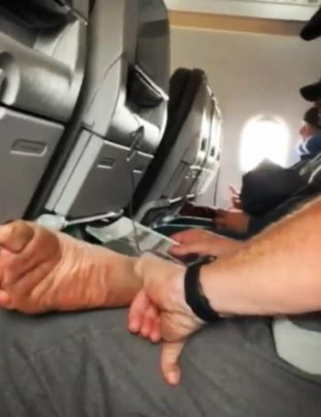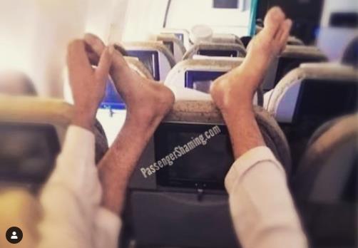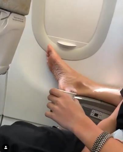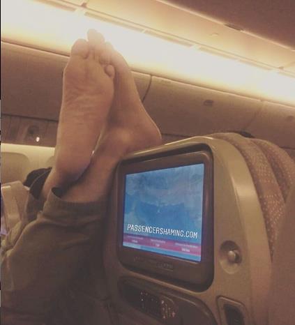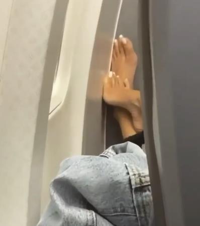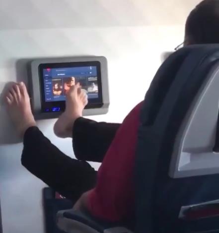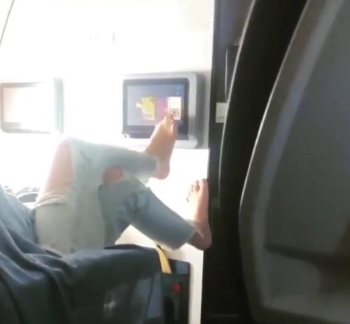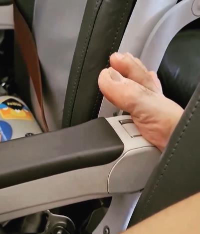 -有人直接把臭脚怼在前排乘客的头顶上: